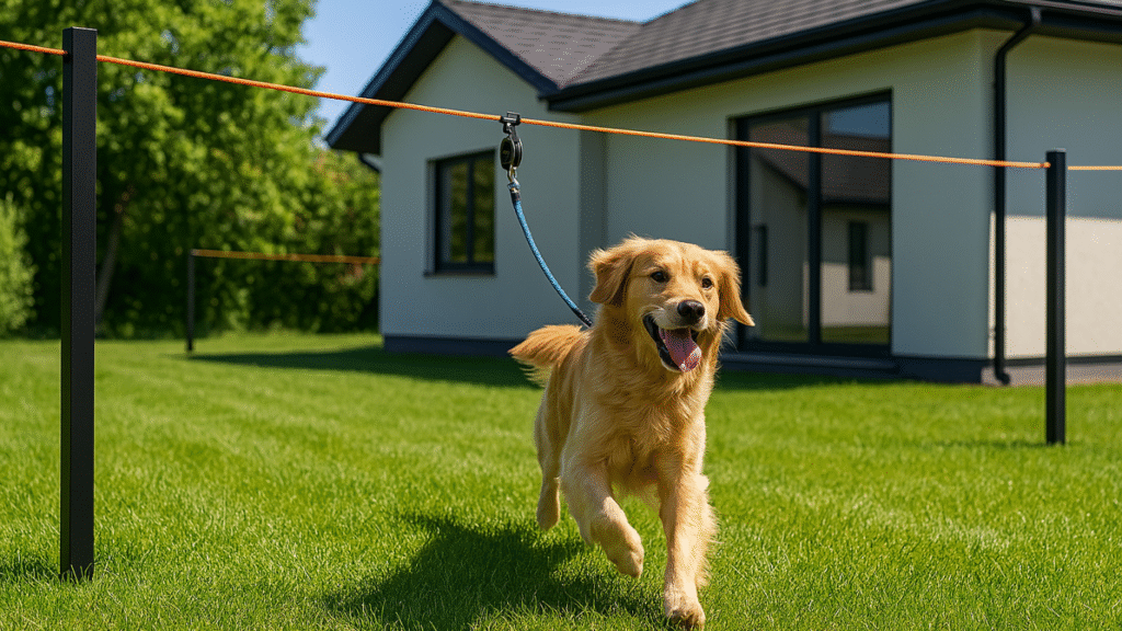 Le chien peut ainsi se déplacer librement le long du / des câble(s), dans un périmètre défini et sécurisé.